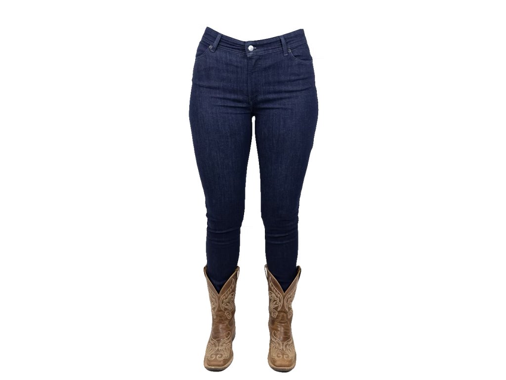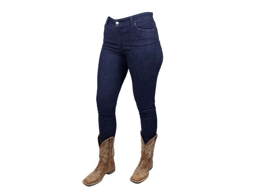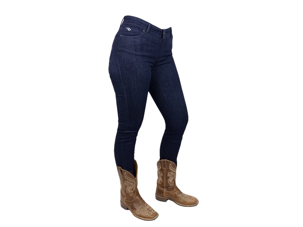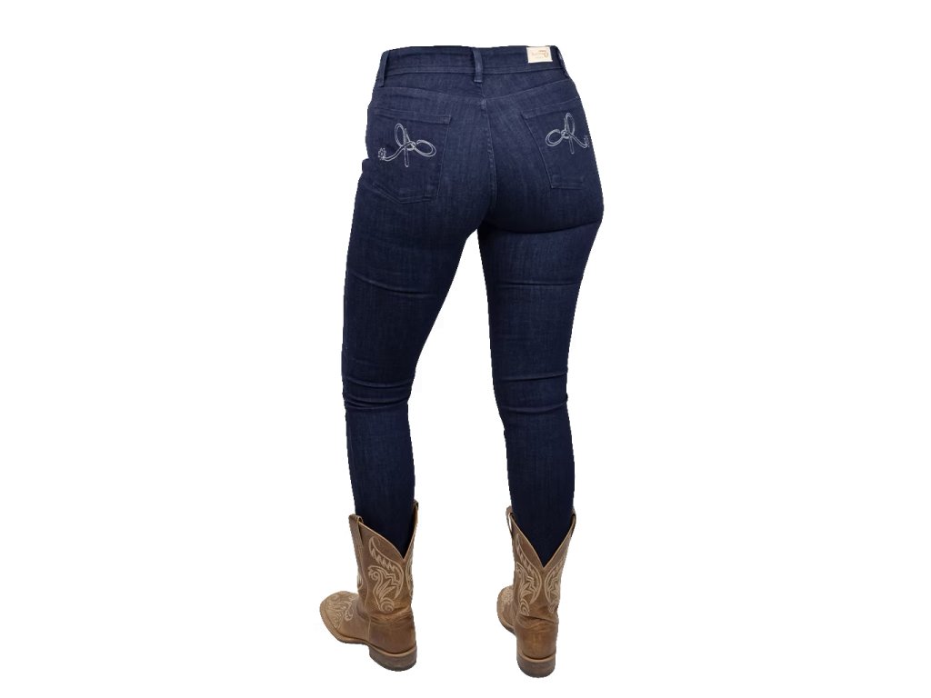 Naše oblíbené úzké džíny Ranch Girls „BETSY“ v tmavém denimu jsou zpět – nyní s novým stylovým designem. Super pohodlný strečový denim zajišťuje maximální pohodlí - ať už v sedle nebo v každodenním životě. Džíny jsou střiženy těsně na tělo, s přiléhavým střihem na nohavici a lemu a nosí se klasicky pod nohu kovbojských bot. BETSY skvěle sluší i při nošení k teniskám. Lehce sepraný tmavý denim dodává džínám moderní vzhled. Pas sedí mírně nad kyčelními kostmi - perfektně vyvážený, ani příliš vysoký, ani příliš nízký. Zvláštní zvýraznění: zadní kapsy jsou zdobeny jemnou výšivkou z třpytivé béžové lurexové příze - sofistikovaný detail s westernovým nádechem.