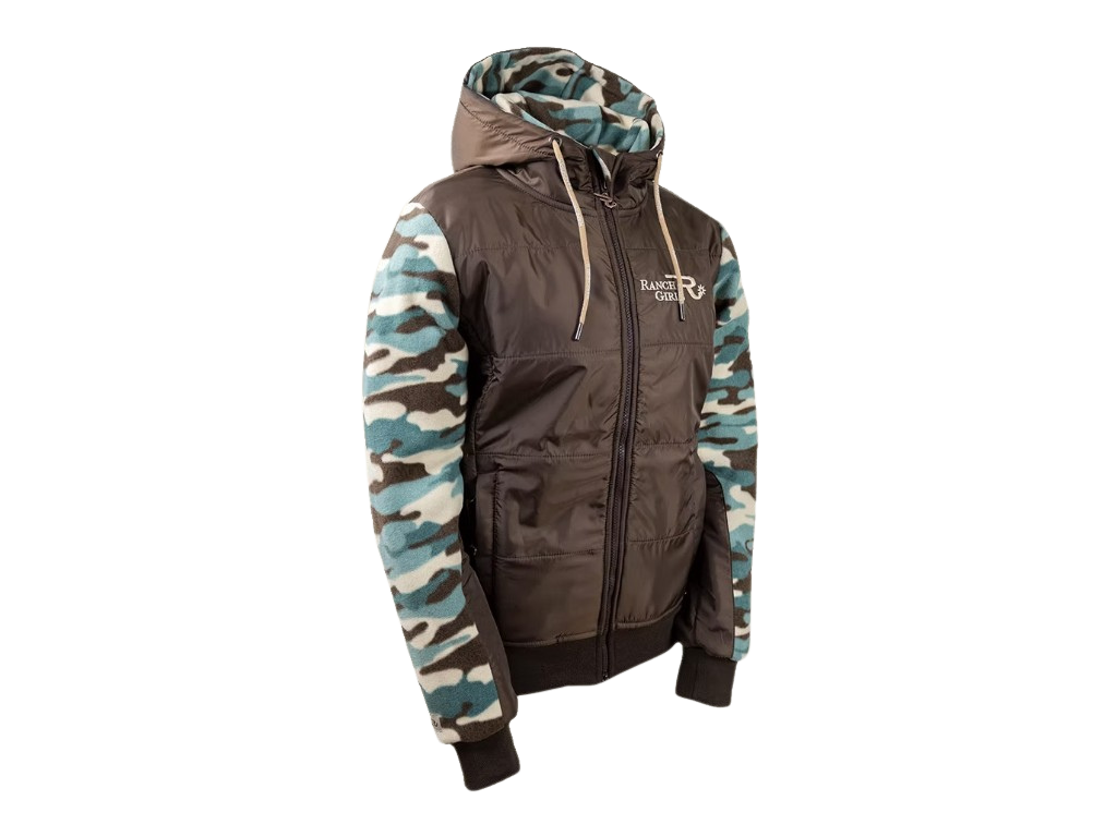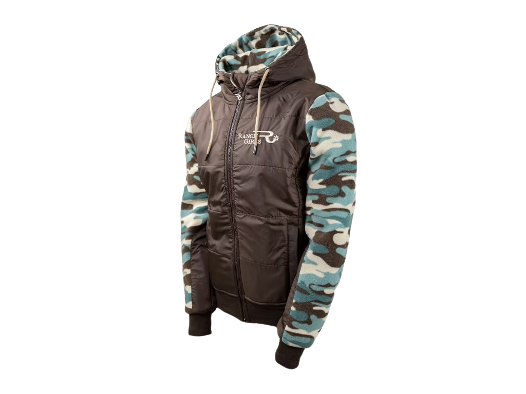 Nepřekonatelná fleecová bunda Ranch Girls Pro Shield „CASSIE“ v barvě camouflage právě dorazila a představuje ultimátní kombinaci 330g polar fleecu a nylonu. Nylonový materiál na přední straně těla, kapuci a přes lopatky účinně chrání před větrem a deštěm, zatímco hřejivá kvalita fleecu zajišťuje naprostou volnost pohybu a optimální odvod vlhkosti. Jedná se o skvělý kousek, který vás bude provázet všemi ročními obdobími, navíc doplněný o jemné výšivky loga Ranch Girls, které jsou znakem tohoto výjimečného značkového zboží.