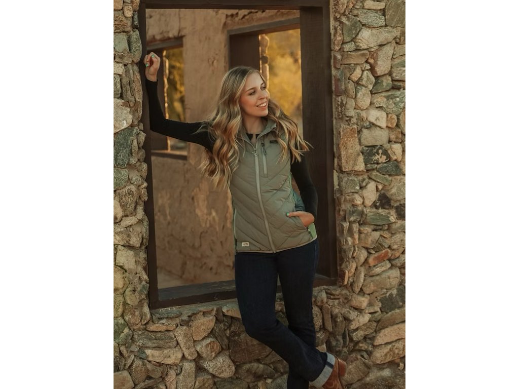 Nová dámská nylonová vesta 'Ava' od Ranch Girls je dokonalou volbou pro jezdce, kteří dbají na styl. Je vyrobena z odolného, voděodolného nylonu a je lehce polstrovaná polyesterem, což zajišťuje optimální ochranu za každého počasí. Funkční nylonový materiál je pevný a měkký na nošení. Přední část, kapuce a zadní část jsou vyrobeny z polstrovaného nylonu, zatímco boky jsou vyrobeny z velmi měkkého a elastického materiálu. Tato kombinace zajišťuje, že vesta dokonale padne vaší postavě a zároveň poskytuje vynikající izolaci.